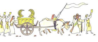 Hahahaha, this is cool!The first place the Philistines put the ark of God is with their god, Dagon. The first morning they find Dagon fallen on his face before the ark of the LORD. They set it back up, and the next day they come in and find Dagon on the ground before the ark of the LORD with its head and hands on the threshhold, only the torso remained.